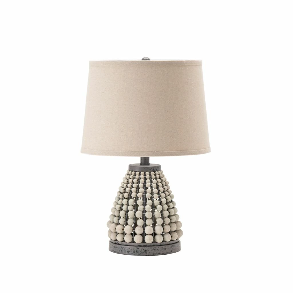 - Table lamp features a versatile black wood finish with beaded accents to seamlessly match any home decor