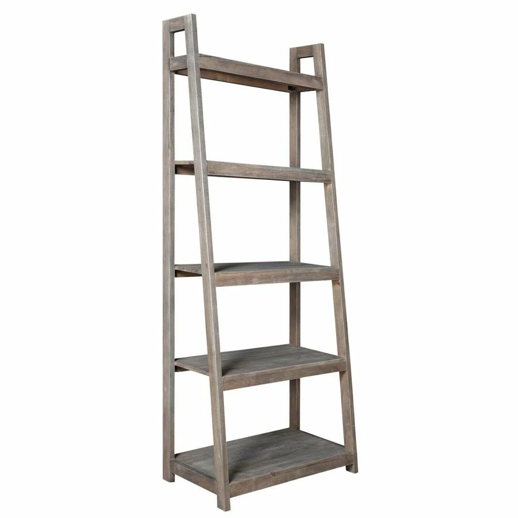 - Angled etagere with 5 shelves provides plenty of versatile storage space