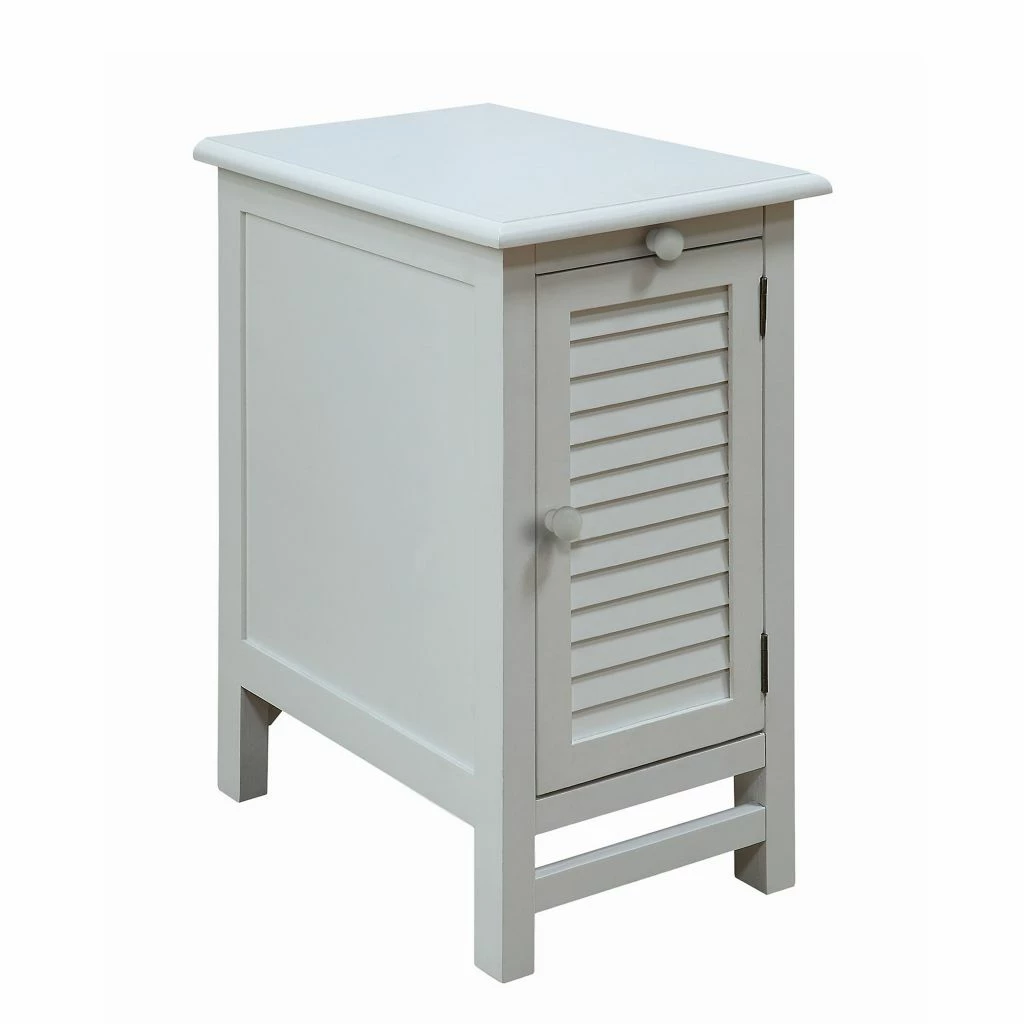 Crestview Collection Cape May Cottage White Shutter Door and 1 Pull Shelf Chairside Table, CVFZR1738