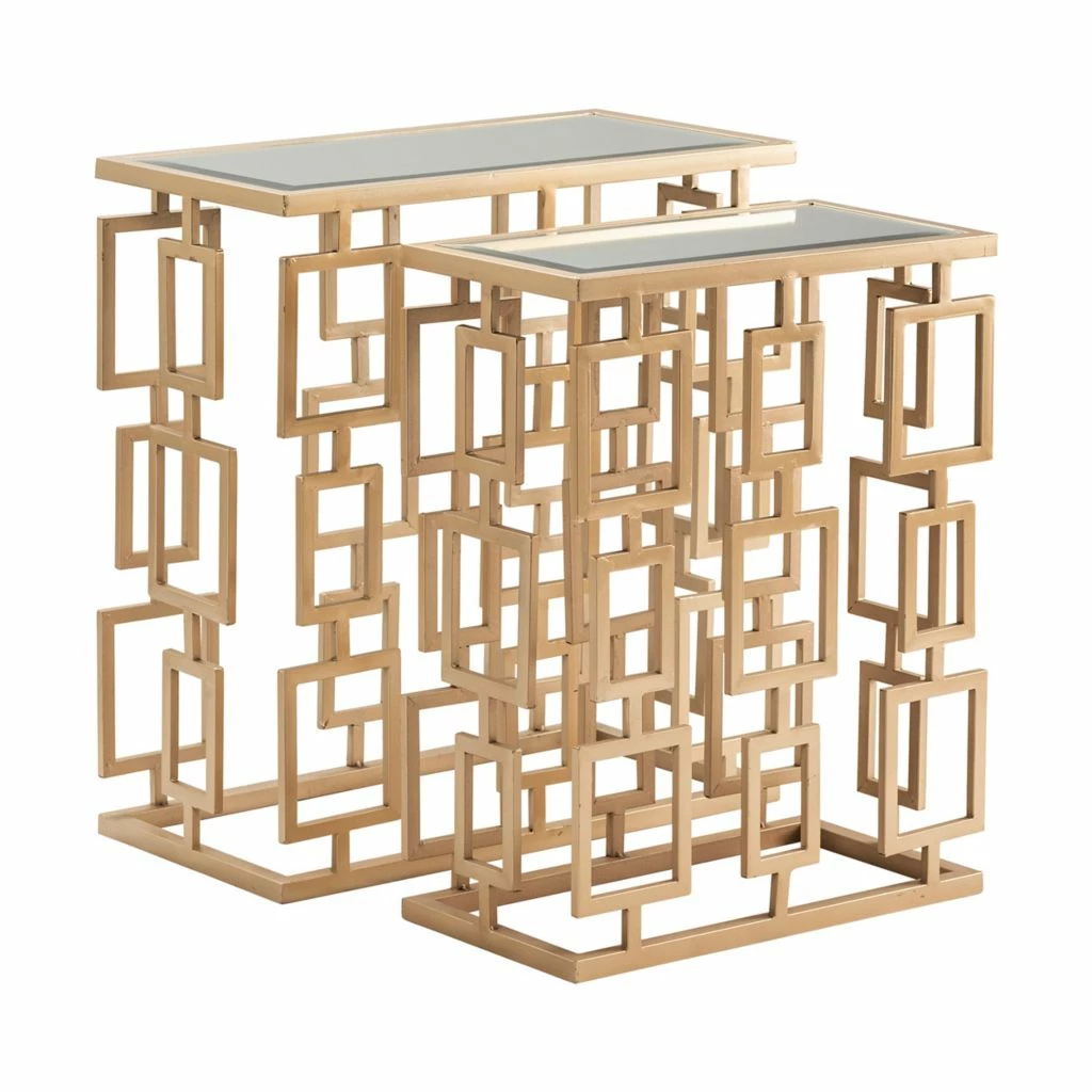 Crestview Collection Maddox Rectangle Champagne Metal and Mirror, Set of Tables, CVFZR3537