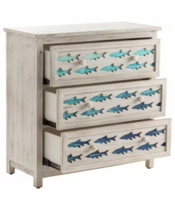 Crestview Collection 3 Drawer White Wash Chest with Gradient Blue Swimming Fish, CVFZR5075